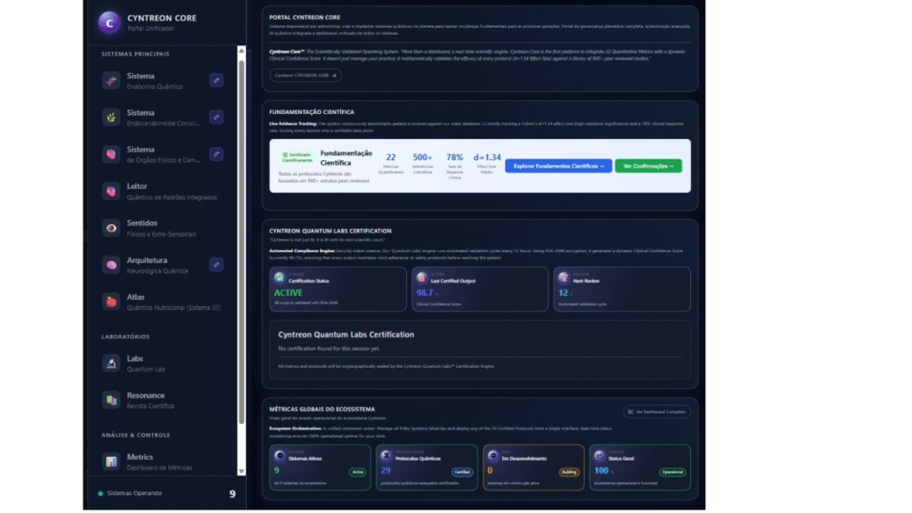 “The world’s first operating system that unifies 11 Bio-Systemic Modules into a single glass-pane dashboard.